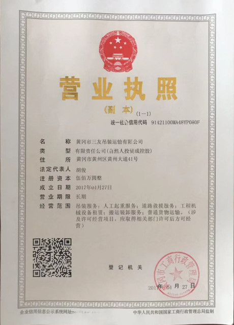 黃岡市三友吊裝運輸有限公司是由業內發展經營十幾年的兩家吊裝公司精英組建而成的,于2017年4月注冊,2018年5月18日正式掛牌,是面向正規化、集團化發展為目標的新興公司。 公司目前擁有資產和設備超千萬,汽車起重機16T-70T10多臺、130T一臺、220T一臺、300T一臺、大型運輸車多臺;擁有專業起重工程操作人員20多人,后續根據市場行情不斷擴大。 公司本著“以人為本,誠信守諾,安全高效,優質服務”的企業核心價值觀;肩負“為成就員工和公司、為成為黃岡市規模屈指可數的吊裝公司而奮斗”的企業使命;以吊裝作業為主體,走吊裝品牌服務、品牌發展路線;以安全高效吊裝作業,…[查看全文]